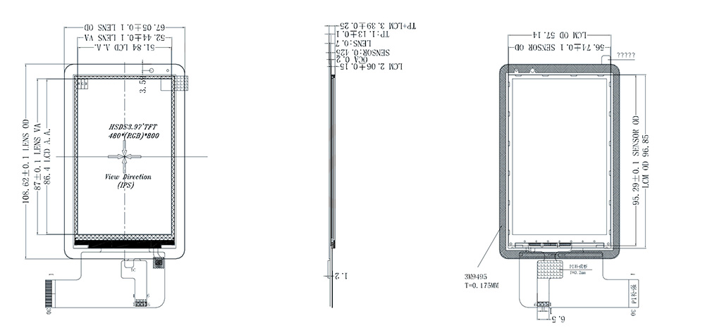 | Taille du contour | 67,05(H)*108,62(V)*3,39(T) | Interface tactile | IIC |