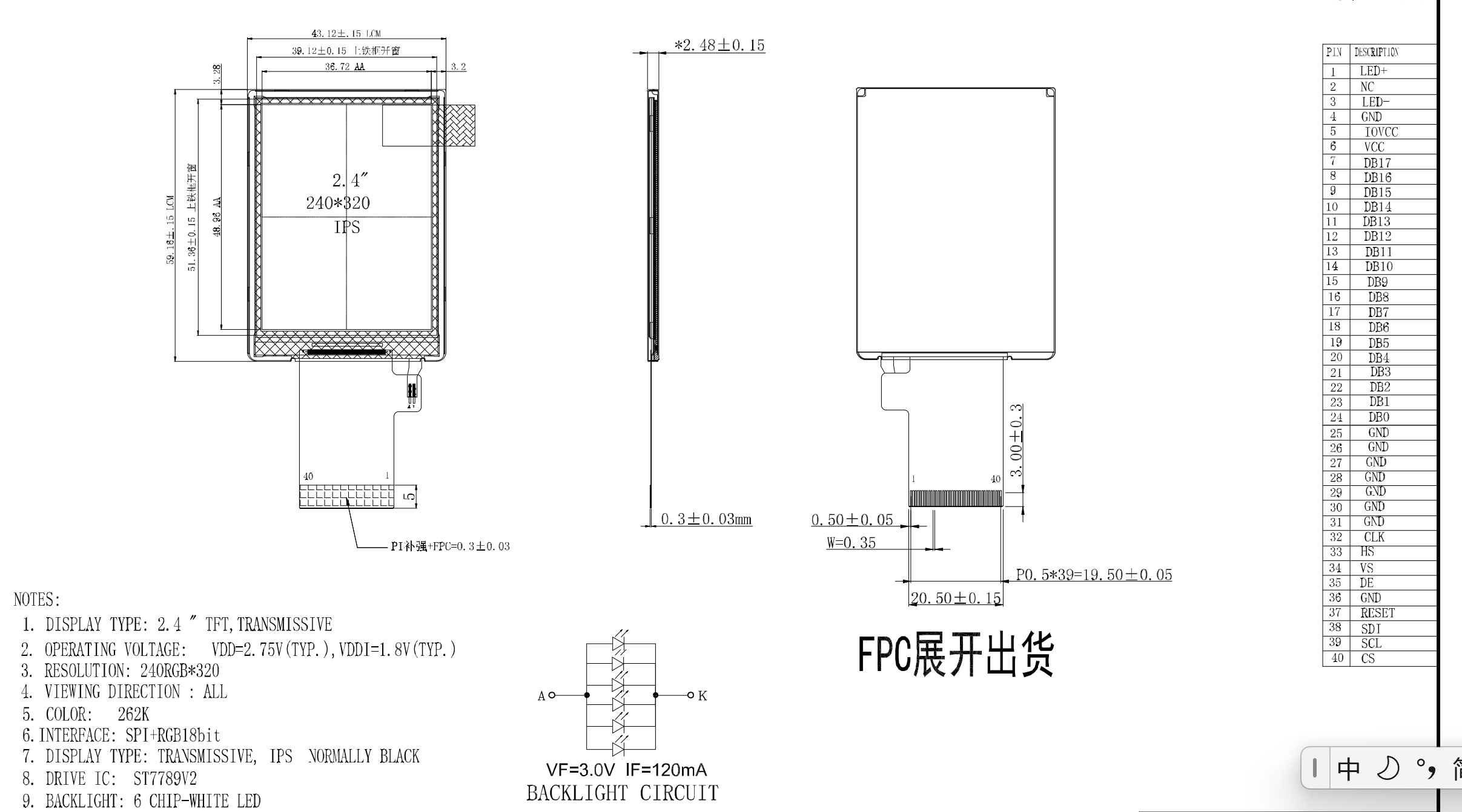 E. Protocole : suit généralement une forme simplifiée du protocole DSI (Display Serial Interface) du MIPI D-PHY, ou une variante de niveau supérieur de l'interface SPI. Sur les écrans grand public de 2,4 pouces, il est souvent simplement appelé « interface RVB série » ou « interface SPI RVB », utilisant essentiellement un sérialiseur pour convertir les signaux RVB parallèles en un flux de données série.